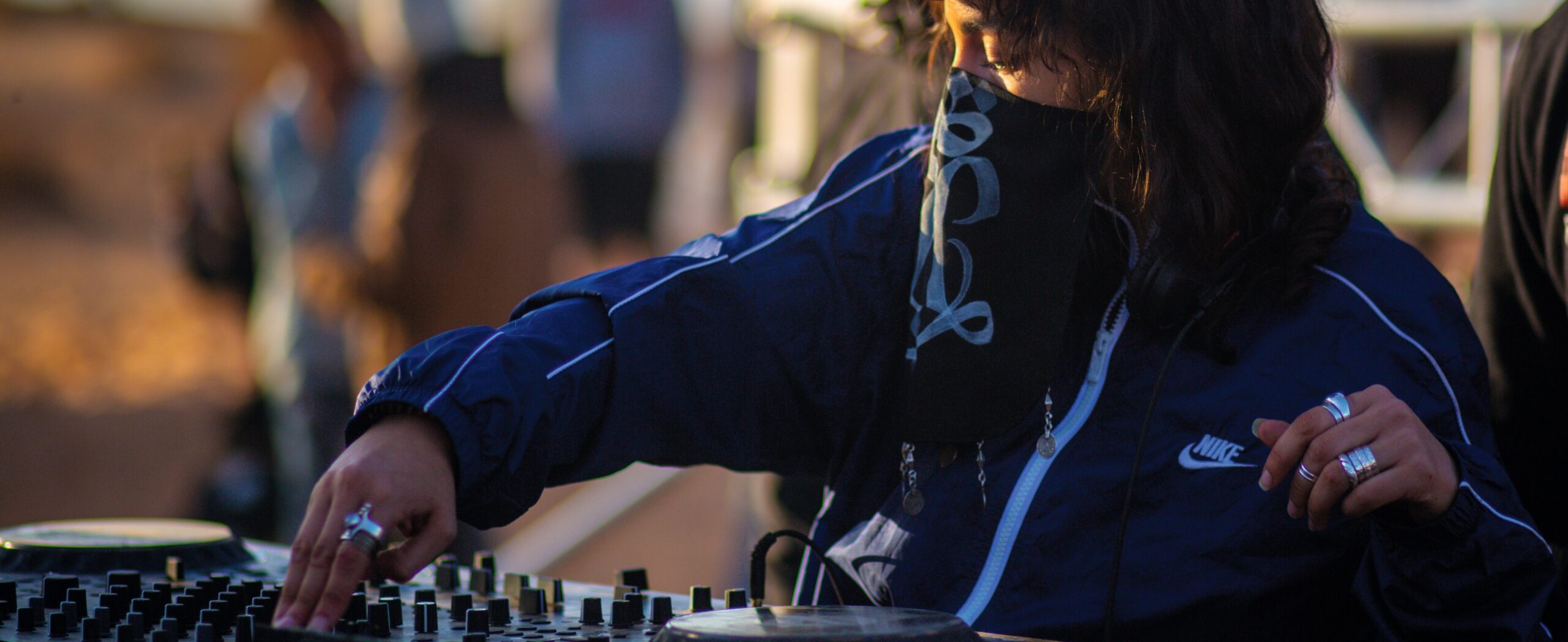 Faël, originaire de Kabylie, a grandi à Alger où elle a découvert la scène techno dans des soirées organisées par des amis. « J’y ai développé un amour pour la musique électronique. À cette époque, c’était la trance qui m’envoûtait. Cependant, grâce à mes voyages, j’ai découvert de nouveaux horizons musicaux, notamment la techno et la musique expérimentale. Cela a commencé à Paris, à Concrete ou à La Machine, puis cela s’est poursuivi à Amsterdam et à Berlin, notamment au Berghain, où j’ai été captivée par l’énergie et la créativité des scènes musicales locales. » Dans la foule, des femmes portent un chèche afin de préserver leur anonymat, et rappeler l’esprit du désert. Ce voile est traditionnellement porté par les Touaregs pour se protéger du soleil et du vent désertique sec. D’autres arborent des tenues aux antipodes de celles conditionnées par la société algérienne. « Dans certaines raves, des Algériens viennent avec un style vestimentaire berlinois », commente Rafik.