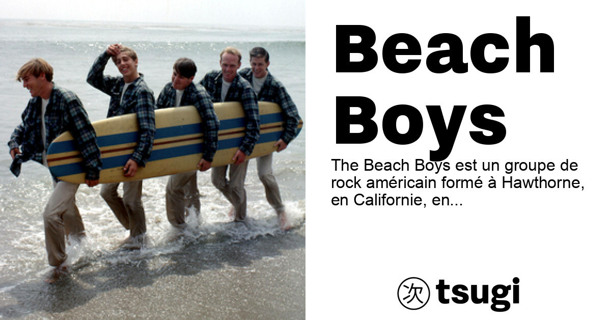 The Beach Boys est un groupe de rock américain formé à Hawthorne, en Californie, en 1961. La formation originale comprenait les frères Brian, Dennis et Carl Wilson, leur cousin Mike Love et leur ami Al Jardine. Connu pour ses harmonies vocales et ses paroles souvent centrées sur la culture des jeunes, le groupe s’inspirait des anciens groupes vocaux pop, du rock and roll des années 1950 et du rhythm and blues. Sous la direction de Brian Wilson, leur musique incorporait parfois des éléments de musique classique et de jazz, ainsi que des techniques d’enregistrement expérimentales.