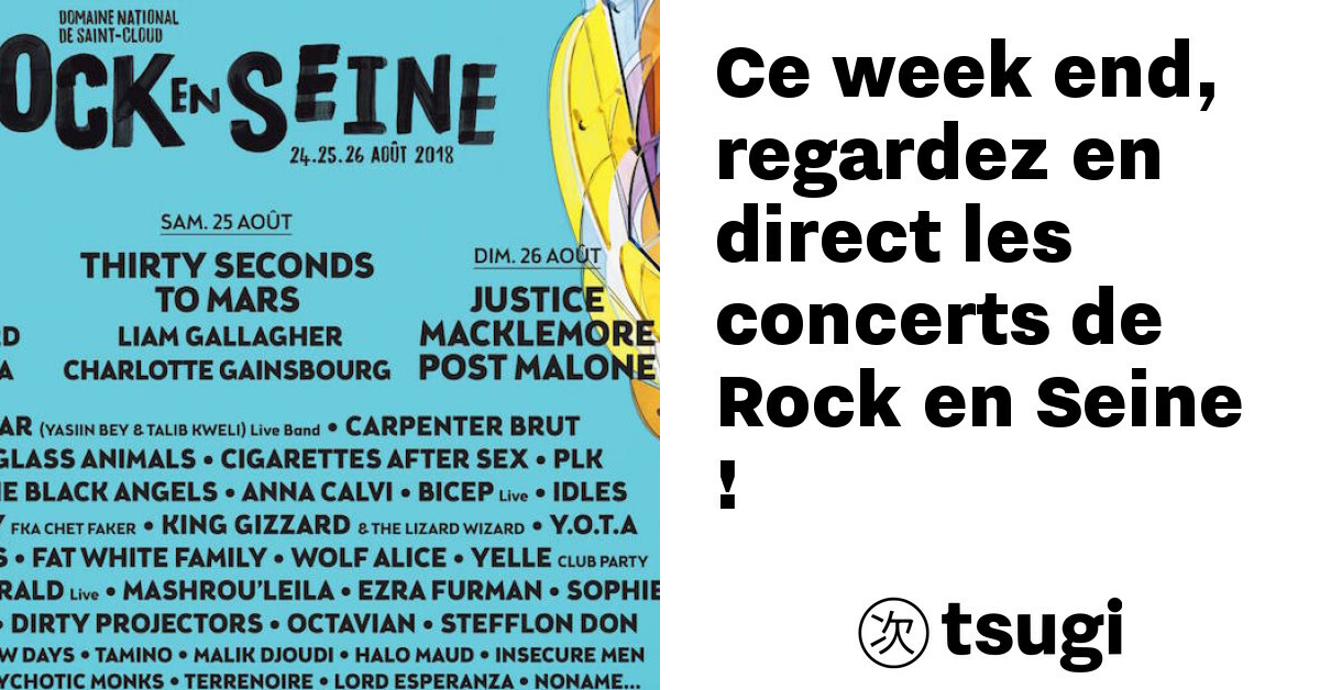 Suivre les lives de Rock en Seine, sans foule ni attente pour choper une bière, à l’abri de la pluie dans votre salon, ça vous tente ? Comme chaque année, Culturebox diffuse en direct et en replay plusieurs concerts du week-end. Le dernier grand festival parisien de l’été accueille entre autres Liam Gallagher, Justice, Charlotte Gainsbourg ou encore Die Antwoord au domaine de Saint-Cloud, du 24 au 26 août. Grâce aux flux ci-dessous qui vous porteront tout le week-end, assistez gratuitement (dans l’ordre) aux concerts du rappeur nonchalant Josman, des rockeurs indé Dirty Projectors et du planant producteur Nick Murphy (anciennement Chet Faker). Profitez aussi des prestations de Yellow Days, Theo Lawrence, du groovy SG Lewis, de l’envoûtante Anna Calvi, Tamino, Insecure Men, Fat White Family, Ady Suleiman… Avant de terminer dimanche soir par le rock oriental arabo-queer de Mashrou’Leila, le rap freak de Post Malone et le rock psyché des Black Angels.