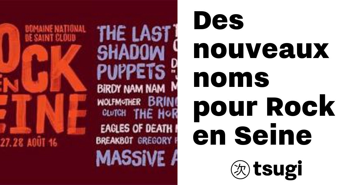 Pour cette treizième édition, le festival fédère grâce à des têtes d’affiches convaincantes. The Last Shadow Puppets, Two Door Cinema Club, Sigur Ros, Birdy Nam Nam, Massive Attack, Foals, Cassius… La programmation s’annonce donc des plus riches. Une flopée de noms manque encore à l’appel mais ne devrait plus tarder à être dévoilée. Créé en 2003, Rock en Seine cumule aujourd’hui 120 000 spectateurs. Il s’installera comme tous les ans au parc de Saint-Cloud, du 26 au 28 août prochains.