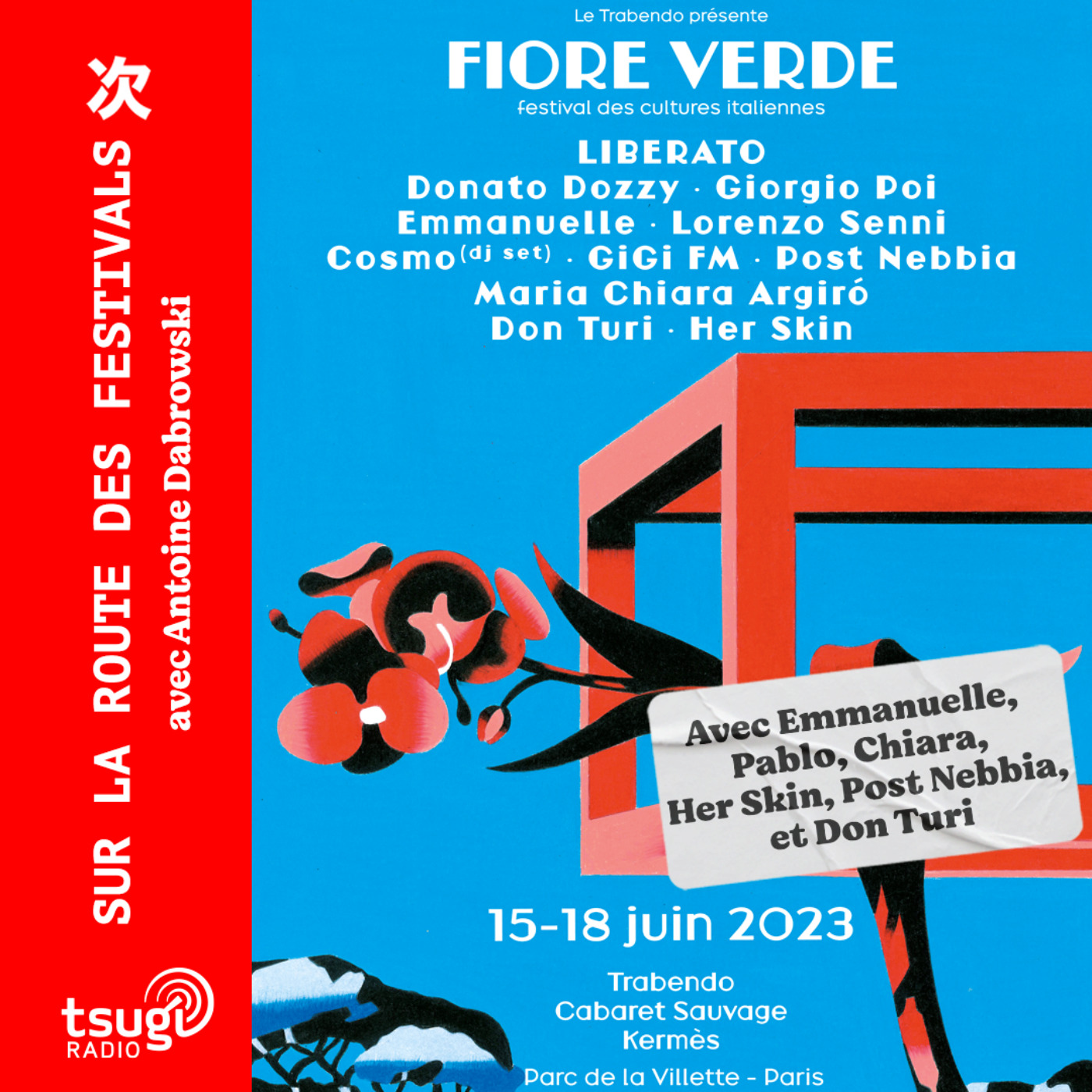 Imaginé par le Trabendo, La Villette accueillait son premier festival consacré à la musique et aux cultures italiennes. Installé sur la pelouse à côté de Kermès, à deux pas de la Philharmonie et de la Grande Halle de Villette, Antoine Dabrowski reçoit les artistes de cette première édition. Une émission qui s’ouvre par le compte-rendu de l’épique concert de Liberato au Cabaret Sauvage relaté par Benoît Felix-Lombard.