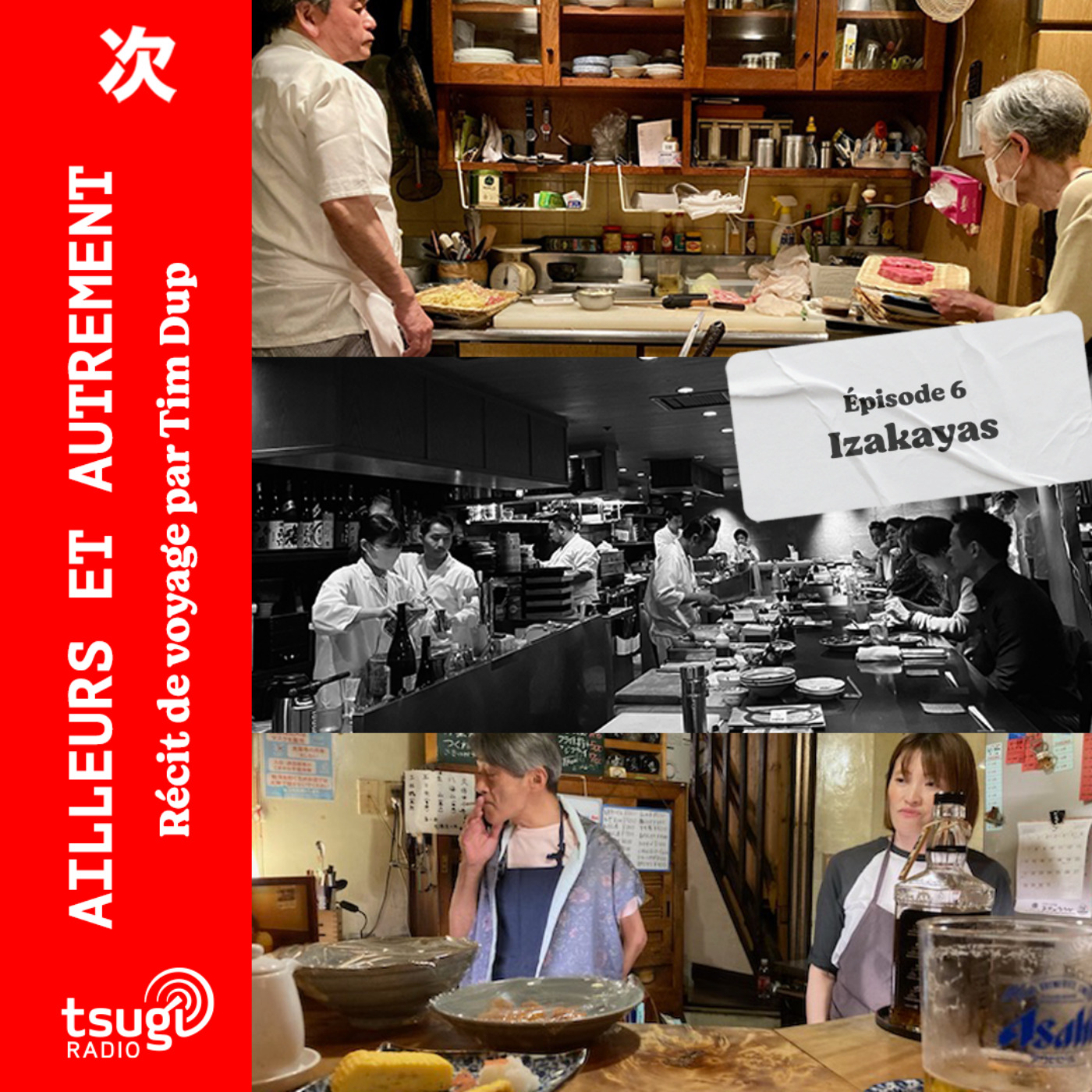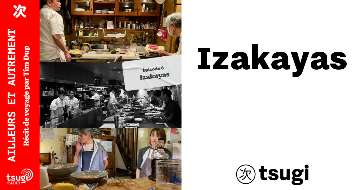 Un titre suspendu à la porte, des signes kanji ou hiragana pour dire alcool, entrées de saison, plats traditionnels ou autres. Quelques lanternes akachochin en papier rouge. Une porte coulissante refermée. Lumière chaude à l’intérieur. Fumée qui glisse entre les joints. Bruits de couverts matés par les murs.