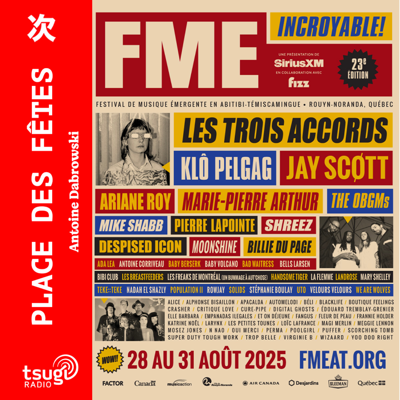 Aujourd’hui c’est le retour de Place des Fêtes, sixième saison du rendez-vous musique et culture de Tsugi Radio avec le retour de nos chroniqueuses et chroniqueurs, aujourd’hui c’est Juliette de Prigny qui nous parle d’un jeu vidéo, présenté comme le chef d’œuvre de l’année, le jeu français Clair Obscur Expedition 33. Mais d’abord direction l’Abitibi-Témiscamingue, au Nord du Québec. Fin août, je me trouvais au Festival de Musique Émergente de Rouyn-Noranda. C’est une ville minière de 52 000 habitants, tout au Nord du Québec, au sous-sol creusé par les industriels avec la bénédiction des gouvernements successifs, pour en extraire de l’or, du cuivre et autres minerais, et tant pis si ça pollue les lacs ou rase les forêts ! Dans cette ville qui fêtera l’an prochain son premier centenaire, une bande de potes qui s’ennuyait ferme a lancé il y a 23 ans le FME pour Festival de Musique Émergente. Comment faire venir dans ce coin reculé du monde, où l’hiver dure presque toute l’année, des artistes qui font sensation à Montréal, Québec, Sherbrook ou Paris ? Paris tenu : chaque année des musiciens mais aussi de nombreux professionnels viennent profiter de la fin de l’été à Rouyn et découvrir la fine fleur de la scène québécoise. Comme nous qui avons rencontré Ariane Roy, le groupe local Et on déjeune ainsi que l’artiste suisso-guatémaltèque, Baby Volcano.