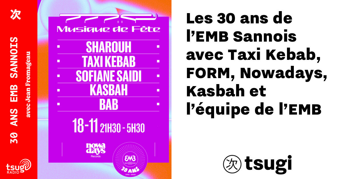 Illustration pour Les 30 ans de l’EMB Sannois avec Taxi Kebab, FORM, Nowadays, Kasbah et l’équipe de l’EMB