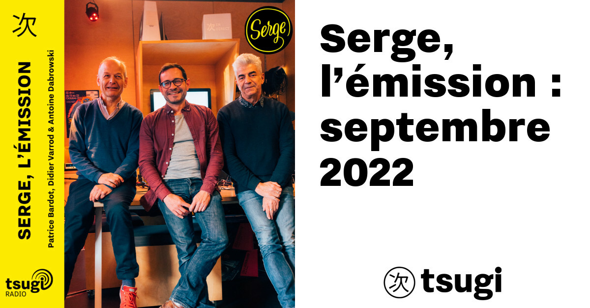 On ne sait plus où donner de la tête ! Les albums repoussés, les quantités de chansons écrites ces deux dernières années, ça y est tout sort enfin ! Et pour cette rentrée de Serge, l’émission il a fallu choisir parmi les très bons disques qui sortent en cette fin d’été : Pomme, Dominique A, Benjamin Biolay. À venir Jeanne Added, Foé ou Louise Attaque. Il y a de quoi donner le tournis. Mais ce qui fait battre nos petits cœurs ici, c’est de vous raconter nos coups de foudre, de vous parler d’artistes qui ne sont peut-être pas encore arrivés jusqu’à vos oreilles, de faire briller leur flamme comme dirait Juliette. Et pour ça on s’y met à trois parce que c’est trois fois mieux ! Tous les mois on vous compose une sélection de 12 titres, 9 nouveautés et 3 classiques, 12 chansons en français qui vont de la pop, au rock, au rap, à la folk ou a l’electro, en souvenir du magazine Serge qui aurait eu 12 ans cette année. Un magazine dont deux des papas me rejoignent chaque mois au micro de la Tsugi Radio : Didier Varrod et Patrice Bardot.
