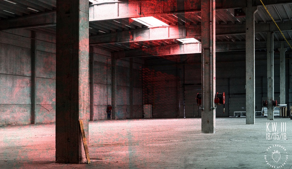 Prochain rendez-vous ? Ce vendredi 18 mai. Troisième édition de la série Kollektiv, la teuf réunira six collectifs parisiens bien connus des teufeurs invétérés et fans de hangars : BNK, Container, EXIL, New’s Cool, La Quarantaine et Contrast System, pour une programmation techno, indus, voire hardcore avec [KRTM] pour terminer les hostilités. Quant au lieu du crime, un peu de patience : l’adresse de la warehouse sera annoncée demain en début de soirée. Mais une chose est sûre pour Mehdi : « ça sera bordélique et grand ».