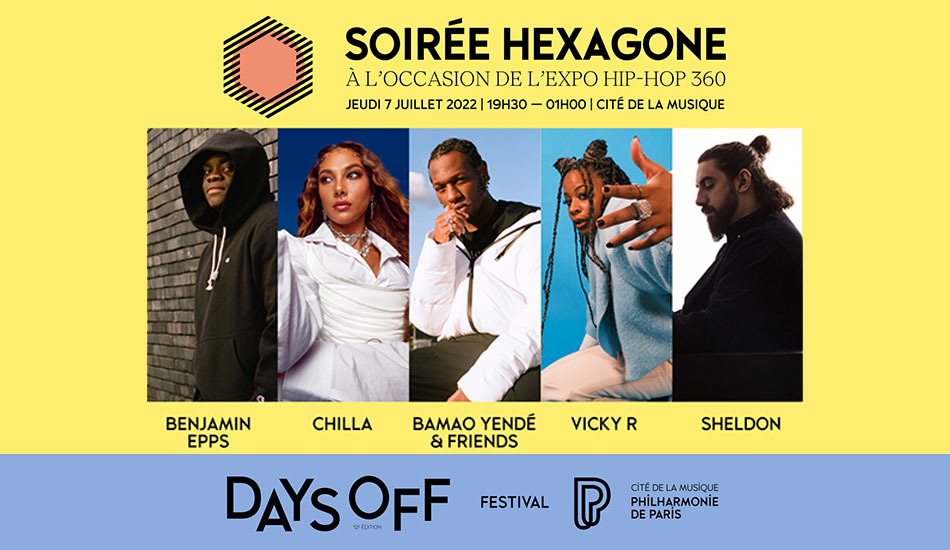 Le 7 juillet prochain, le hip-hop francophone est mis à l’honneur à la Philharmonie de Paris dans le cadre du festival Days Off, lors de la soirée Hexagone. À l’affiche Chilla, Vichy R, Benjamin Epps, Sheldon et Bamao Yendé. Que du beau monde.