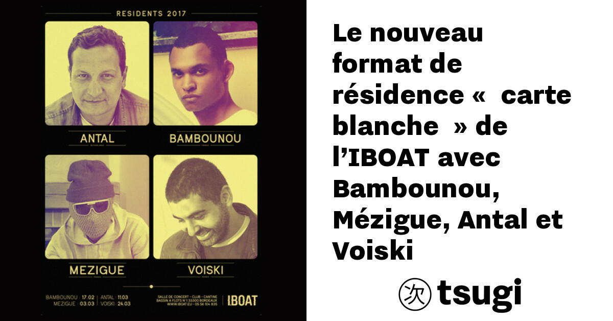 Fort de ces événements, l’IBOAT se lance dans un nouveau concept de résidence offrant des « cartes blanches » à des artistes reconnus. Lors de ces nuits, des producteurs inviteront les artistes qu’ils chérissent et qu’ils souhaitent faire découvrir aux danseurs bordelais. Le projet lancé le 17 février avec la résidence de Bambounou invitant Minor Science et Don’t DJ continuera le 3 mars. Ce sera au tour de Mézigue, la star du label D.KO records, de proposer des DJs sets de LB Aka Labat et d’EOD. Les prochaines cartes blanches seront laissées à Antal le 11 mars et Voiski le 24.