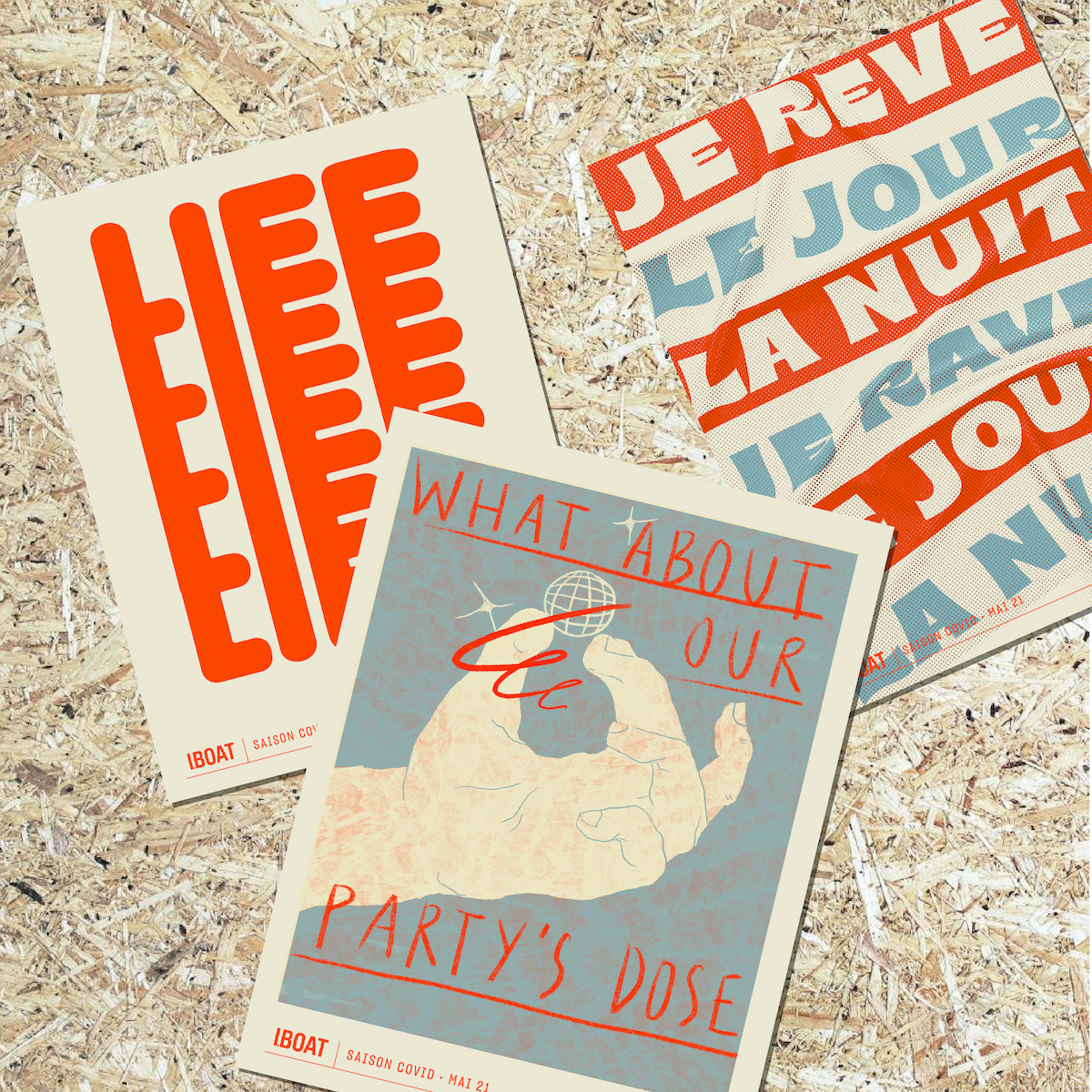 « Si 2020 marquera à jamais l’année de la culture mise à poil, plus qu’une option pour 2021 : la rhabiller ! », plaisante l’équipe créa’ de l’IBOAT. Haut lieu de fête bordelais, le bateau est connu de tous, même hors territoire. En cette très -trop- longue année où la fête est mise à l’arrêt, l’équipage lance son tout premier projet d’édition. À la manière des affiches des manifs de mai 68, l’IBOAT a demandé à trois designers graphiques avec qui ils collaborent à l’année d’imaginer des sérigraphies en mémoire à notre fête écourtée, et empêchée cette fois en mai 21.