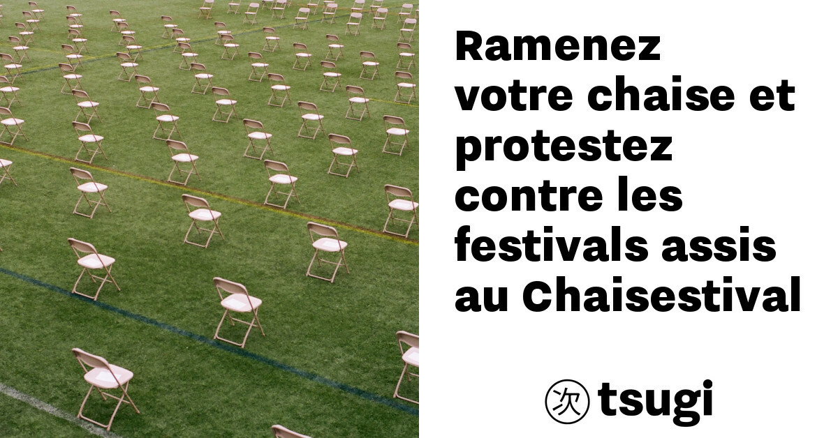 Le Chaisetival est une nouvelle initiative du Syndicat des Organisateurs Culturels Libres et Engagés (SOCLE) pour protester contre la mesure de l’État concernant les festivals assis. L’appel est fait à tous les amateurs de musique amplifiée à venir samedi 6 mars à Paris munis d’une chaise pour un happening très spécial.