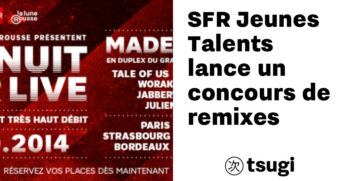 Le 11 octobre prochain, la Nuit SFR investira le Grand Palais et cinq villes de France. C’est à cette occasion que la marque propose un concours de remixes avec, bien évidemment, plein de bonnes choses à gagner. Pour ce faire, il vous faudra remixer la petite boucle SFR que l’on entend au début et à la fin de la pub’… Ça ne vous dit rien ?