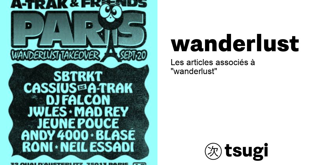 Affiche A-Trak & Friends © A-Trak Articles news A-Trak prend les commandes du Wanderlust, très bien entouré Rendez-vous à ne pas manquer : 20 septembre, au Wanderlust. Le DJ A-Trak va organiser une nuit d'exception au Wanderlust.La… 3 septembre 2025 Lire l’article