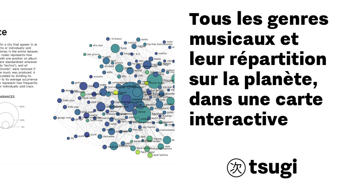 C’est une question qui perdure au fil des années : « C’est quoi ça, comme genre de musique ? » Et la réponse d’aujourd’hui : « On s’en fout, ‘y a plus d’genres de toute façon ». Néanmoins les catégories existent toujours et les gens donnent toujours plus de noms à la musique qu’ils en produisent. Pour nous faciliter la compréhension de cette question aux réponses infinies, le groupe de recherche Components a créé avec les données de Bandcamp de presque un million de tracks ou albums présents sur sa plateforme, une carte interactive dans laquelle on peut trouver, pour chaque ville, les genres qui prédominent, ceux qui lui sont propres et leurs proportions.