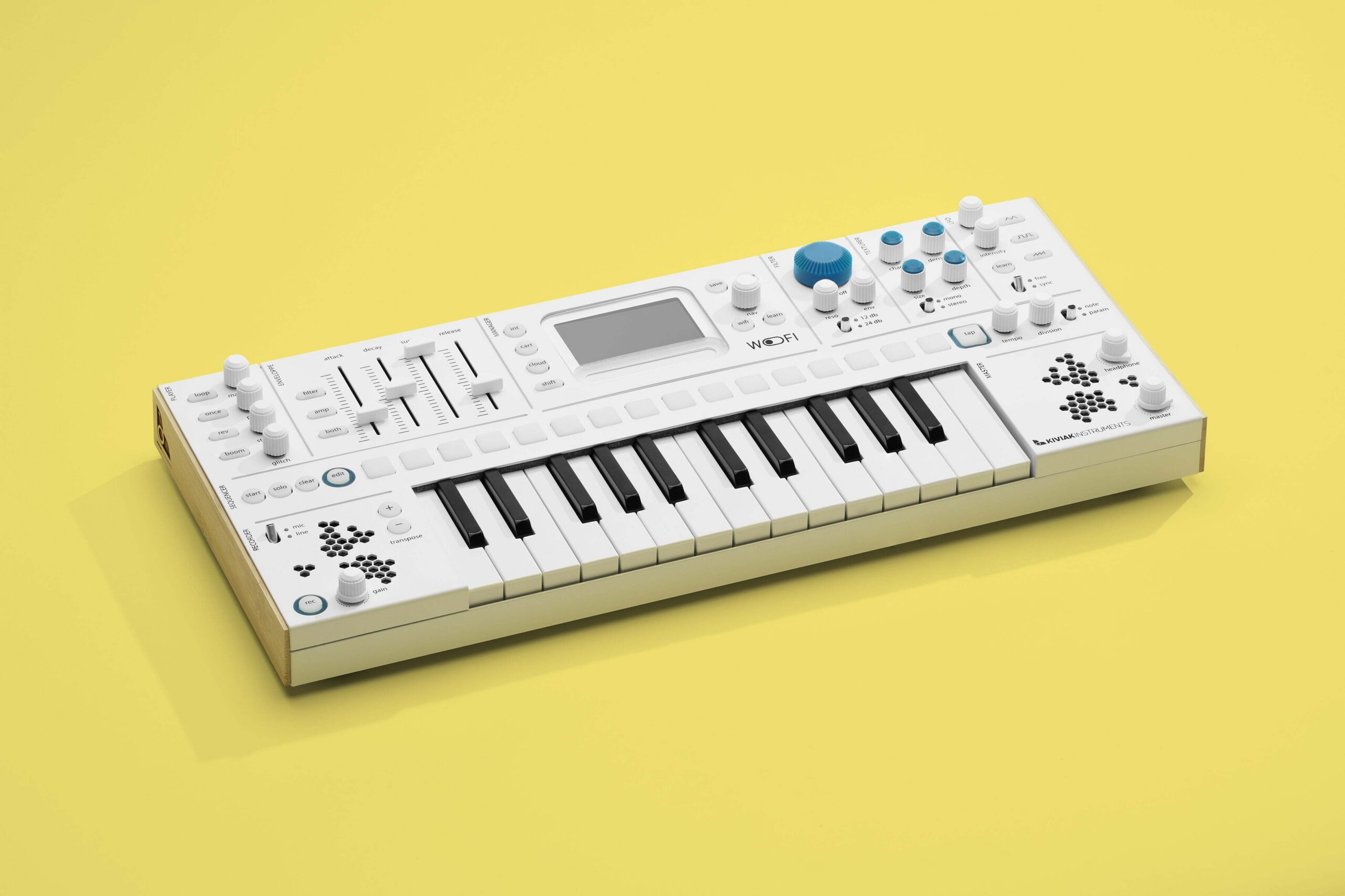 1985, c’est l’année de sortie du film D.A.R.Y.L. (que nos amis de Boston Dynamics et ChatGPT s’évertuent à rendre prémonitoire, mais c’est une autre histoire) et surtout celle du petit clavier Casio SK-1 dont la spécificité était de proposer une fonction d’échantillonnage (très limitée). Une première pour un instrument grand public et particulièrement bon marché. C’est en s’inspirant de cette petite pépite des années 1980 que la société avignonnaise Kiviak Instruments a développé sa première machine – mais en embarquant une technologie actuelle – et il y a un pont ! Petit clavier sampler disposant d’un micro intégré, d’un séquenceur, d’émulation de samplers classiques, d’un cut-off, d’une enveloppe, d’un LFO et – s’il vous plait – d’un module d’effet granulaire nommé texturer, le WoFi se veut le compagnon idéal des amateurs nomades d’échantillonnage et de trituration de son (batterie rechargeable incluse).