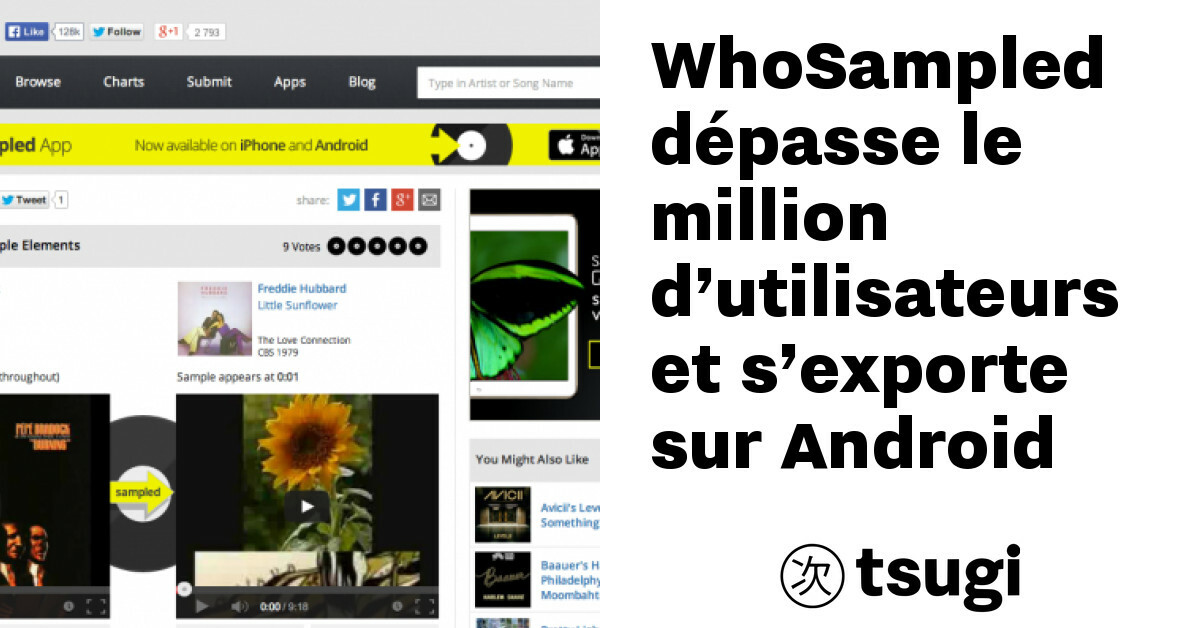 Pour les curieux qui se demandent d’où provient tel ou tel échantillon sonore dans un morceau, il existe WhoSampled, un site très pratique et bien pensé qui les répertorie et les classe. L’engouement est total et à mesure que les références musicales s’étoffent sur le site, le nombre de visites croît jusqu’à atteindre cet automne le million de visiteurs mensuels sur le site. Déclinée en 2012 pour iPhone, l’application Android, gratuite, vient d’être mise en ligne en début de semaine sur le Google Play.